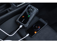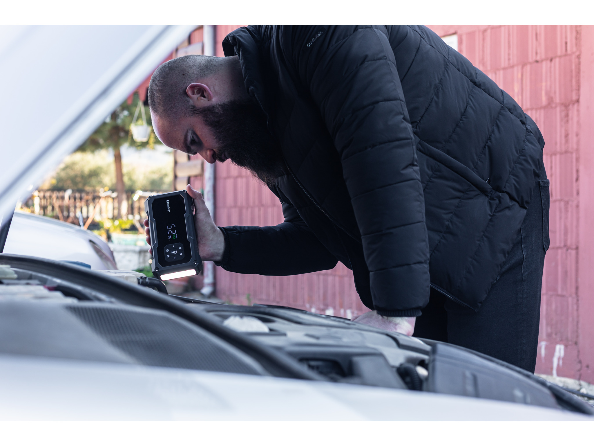 »This upgraded external jump starter battery, with a peak capacity of 400 to 800 A, incorporates a pump capable of over 10 bar! It comes with four valve connectors in addition to jumper cables, an LED light (white, red, or SOS+strobe), and USB A or C outputs. Still as compact (19.5 × 9.7 × 4.5 cm), lightweight (784 g), and practical (charge indicator in %), this emergency backup comes with a 5-year warranty.«