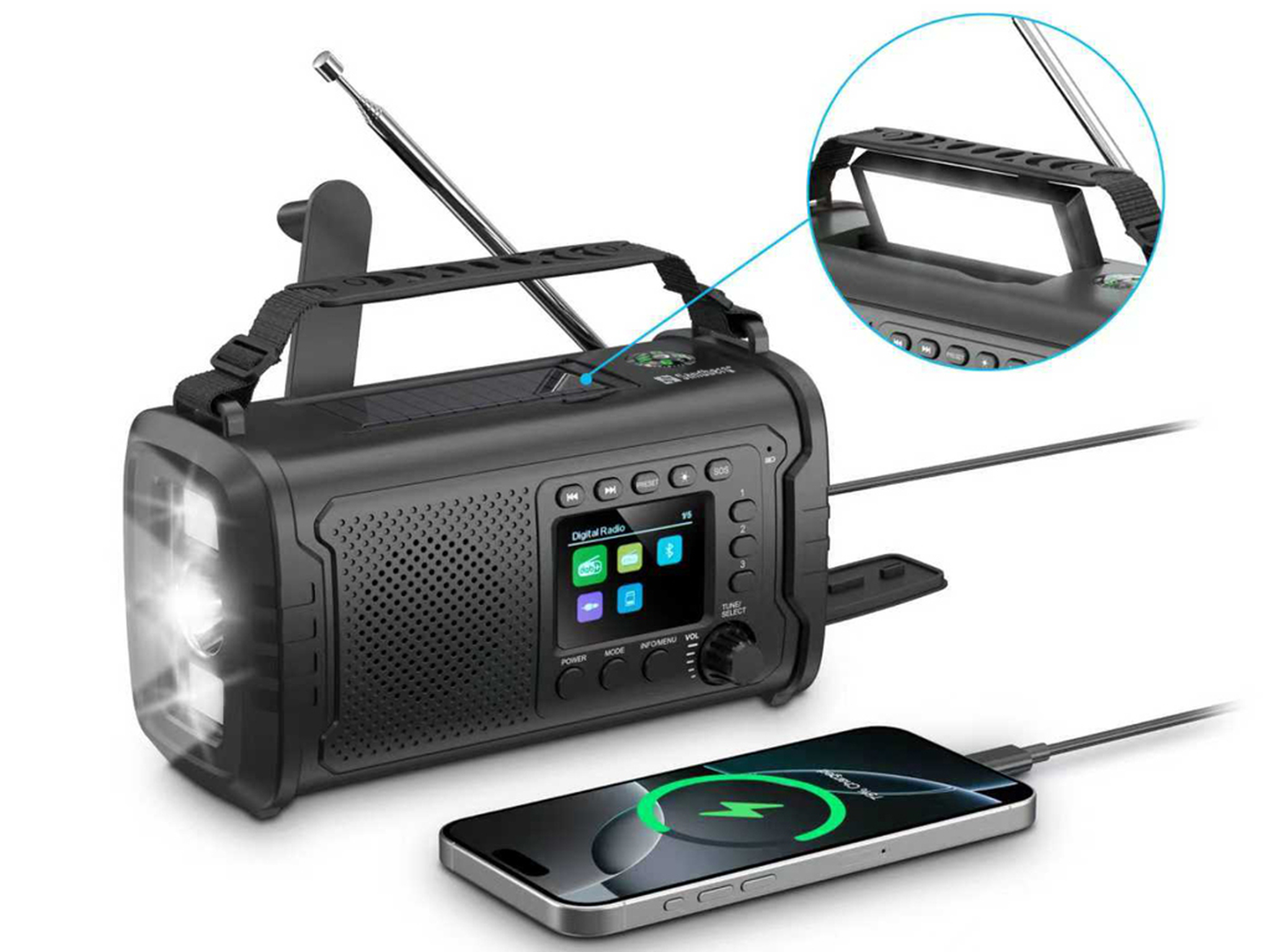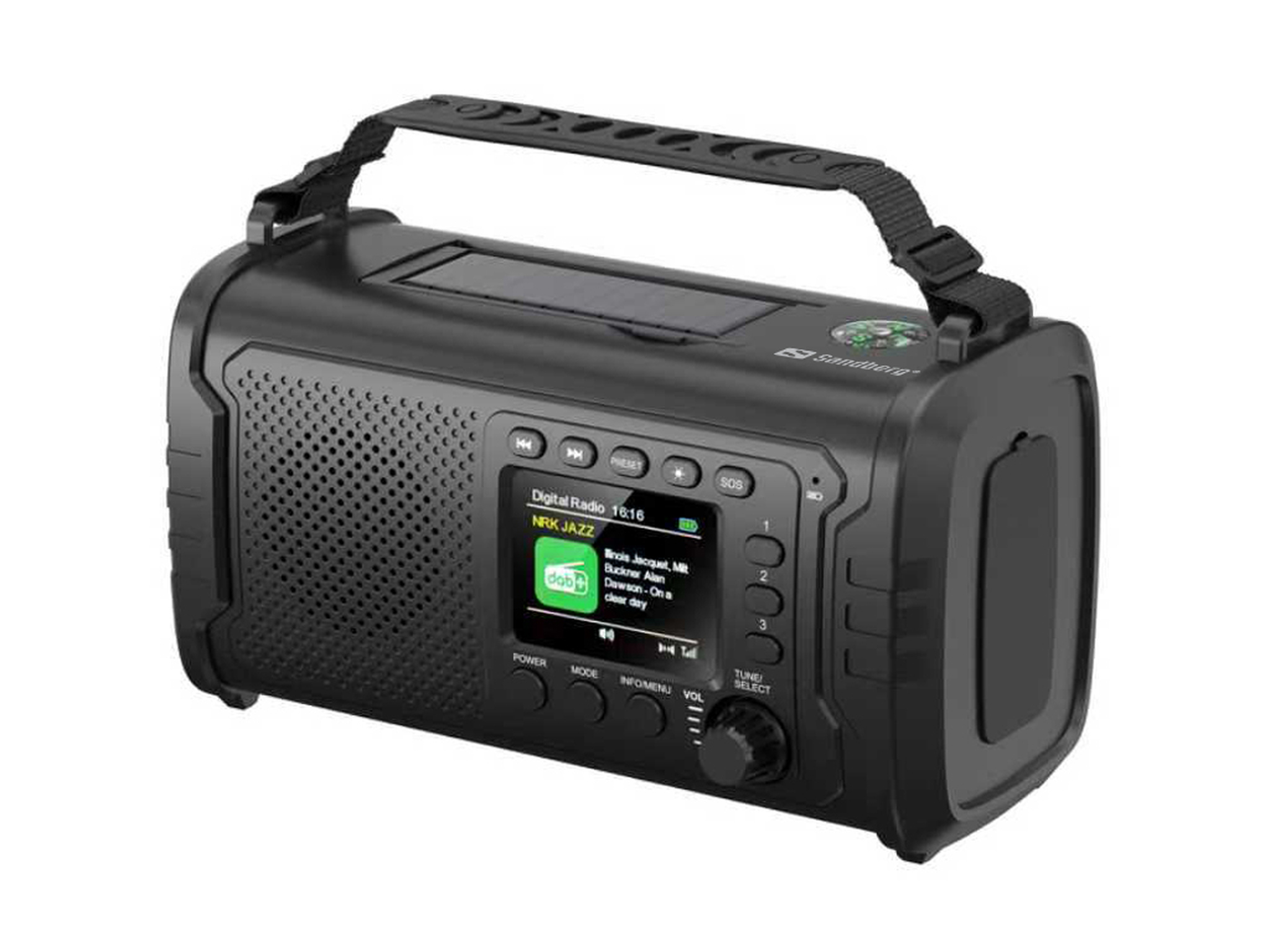 Sandberg Survivor DAB Radio All-in-1 20000 brings together everything you need in nature or emergencies. It offers you DAB+/FM radio, a Bluetooth speaker, and a powerful 20000 mAh power bank in one sturdy and reliable design. With a color TFT screen, solar charging, hand crank, and strong LED lights, you'll always have power, light, and information at your fingertips—even when everything else fails. The perfect choice for outdoor activities, camping, prepping, and unexpected situations where one device needs to do it all.
