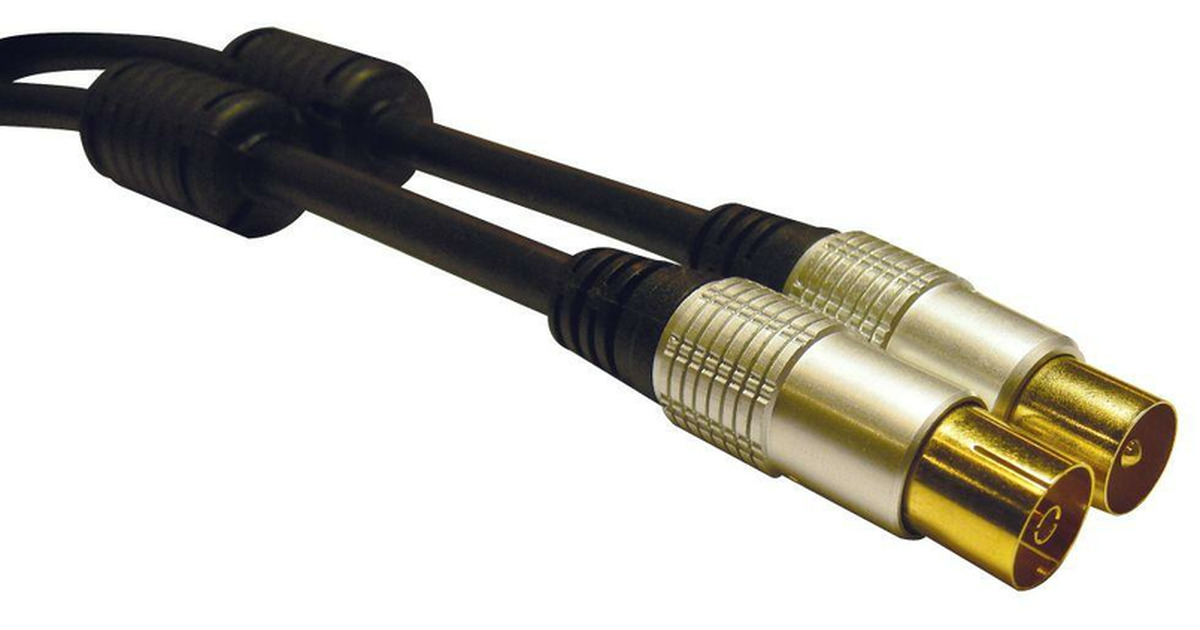 Aerial cable for use with ordinary aerial devices, generally radios or TVs. The cable is made from high-quality materials. You get a sturdy cable with ferrite cores and gold-plated connectors in solid cast aluminium, ensuring optimal signal quality without noise and interference, specially optimised to produce a razor-sharp picture on your flat screen TV.
